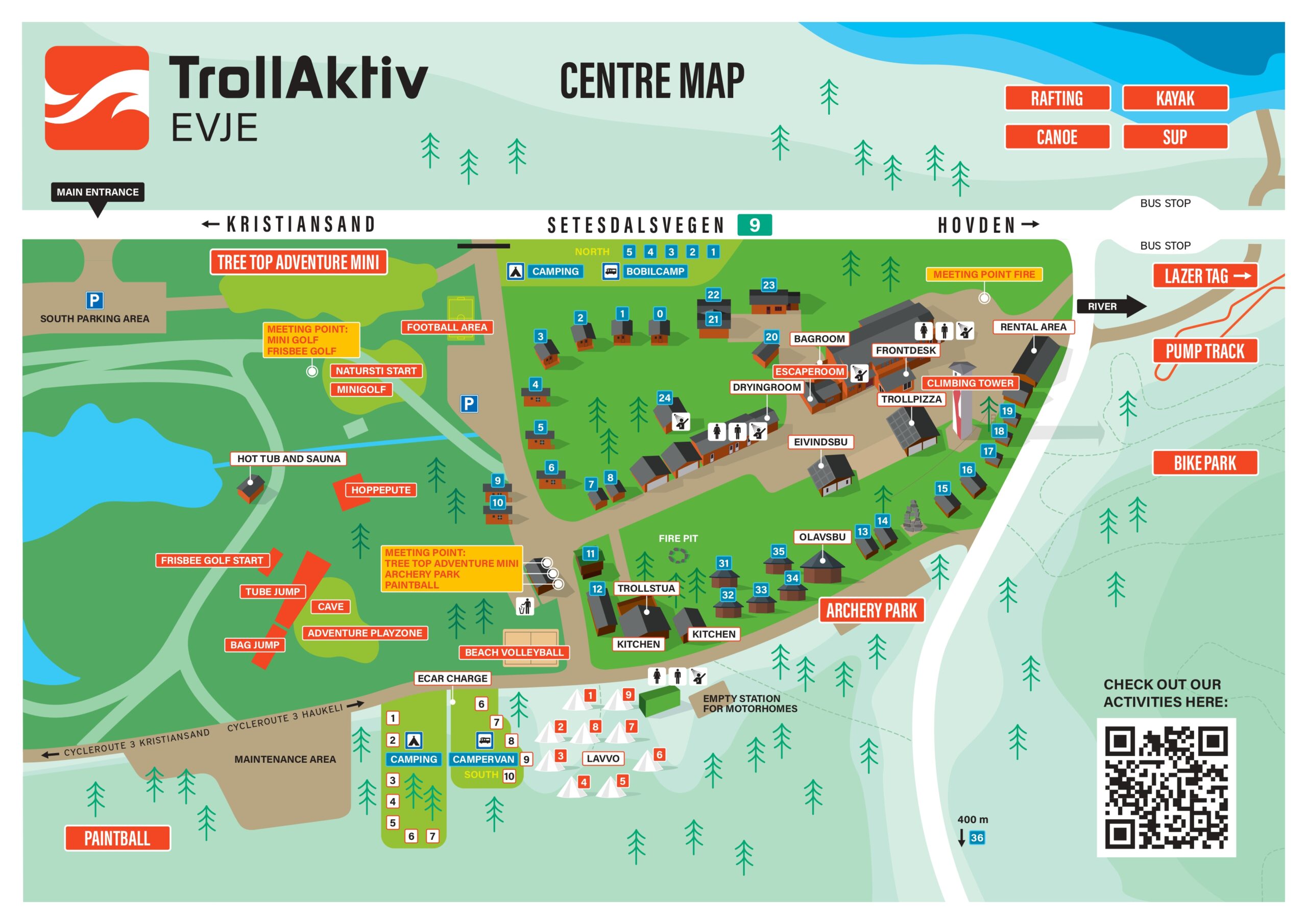 TrollAktiv ligger sentralt på Sørlandet, 5 km fra Evje i naturskjønne Setesdalen.